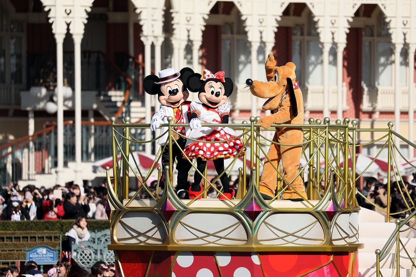 東京ディズニーランドのミニーマウスが主役のパレード=2020年1月9日、千葉県浦安市