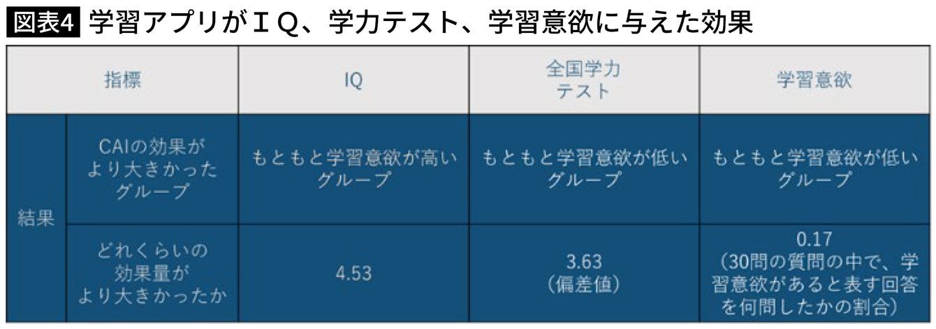 学習アプリは、学習意欲の低い生徒のテストの点数・学習意欲の向上により大きな効果を発揮する(筆者作成)