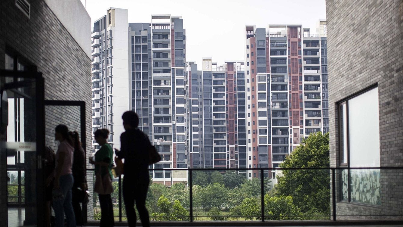 政府が不動産価格の抑制策を導入しているものの、大都市で住宅価格が値上がりした。中国山東省仏山市の物件を内見する中国人たち(2018年12月24日)