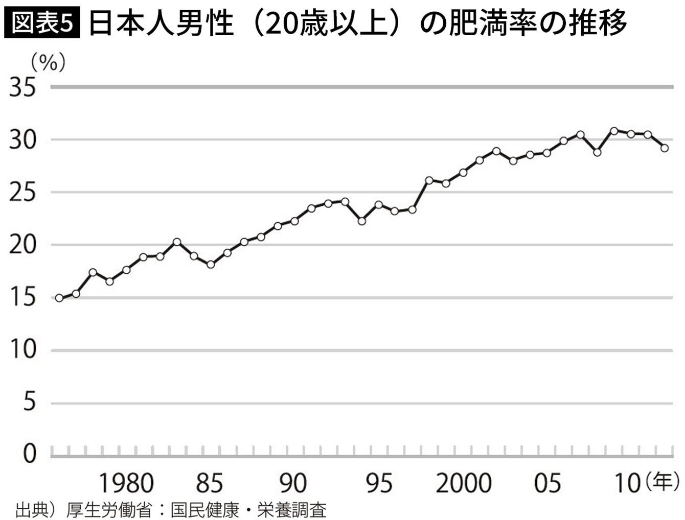 1997年と比べて、1000歩近く歩数が減っている(画像=『