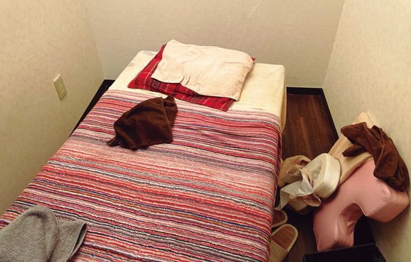 マッサージ店の一室。チャイエス嬢は「リンパ5000円」と称して笑みを浮かべながら股関節に触れてきたが、リンパは固辞した。