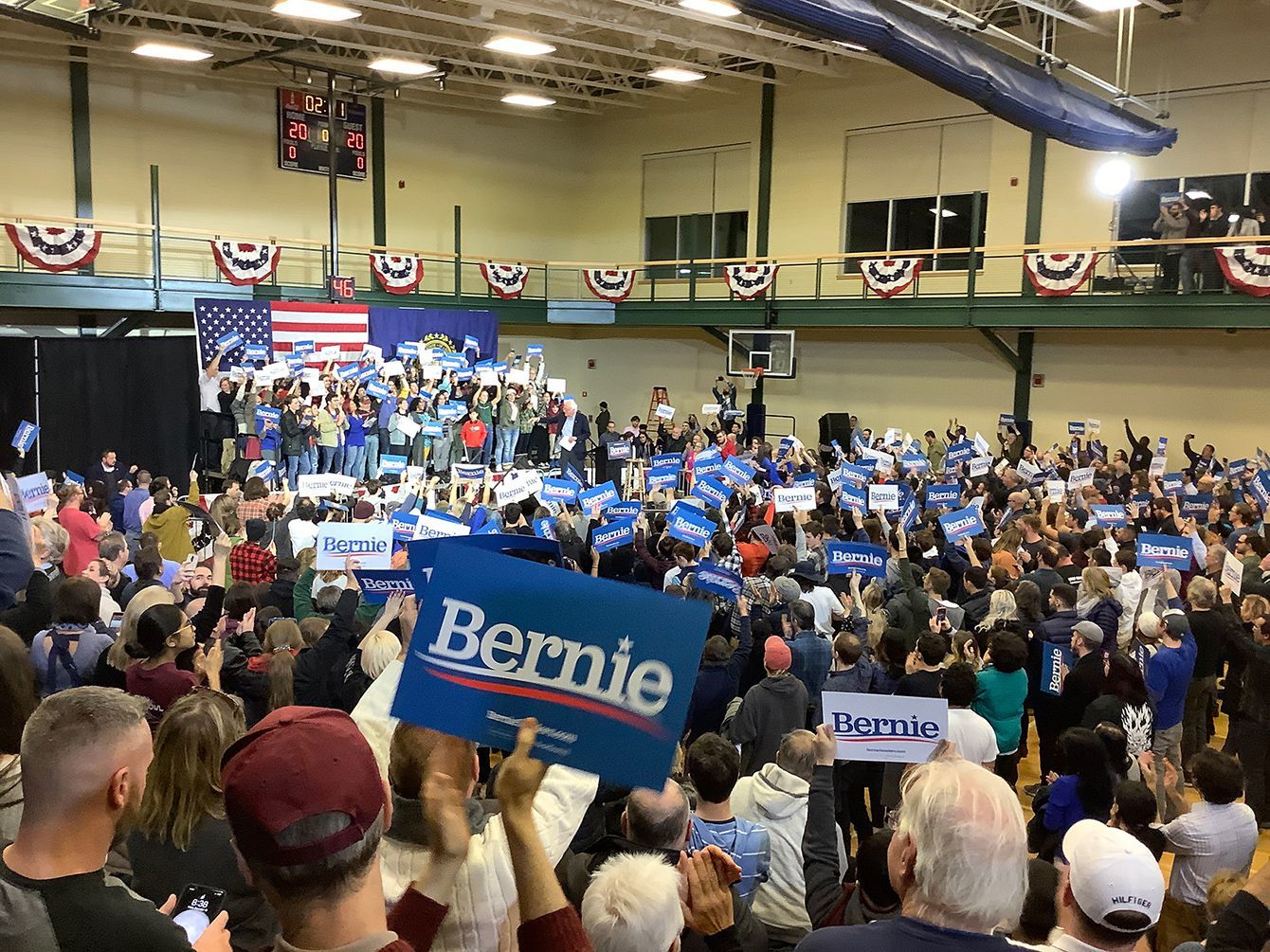 2019年12月19日、ニューハンプシャー州で行われたサンダースの演説会の様子。