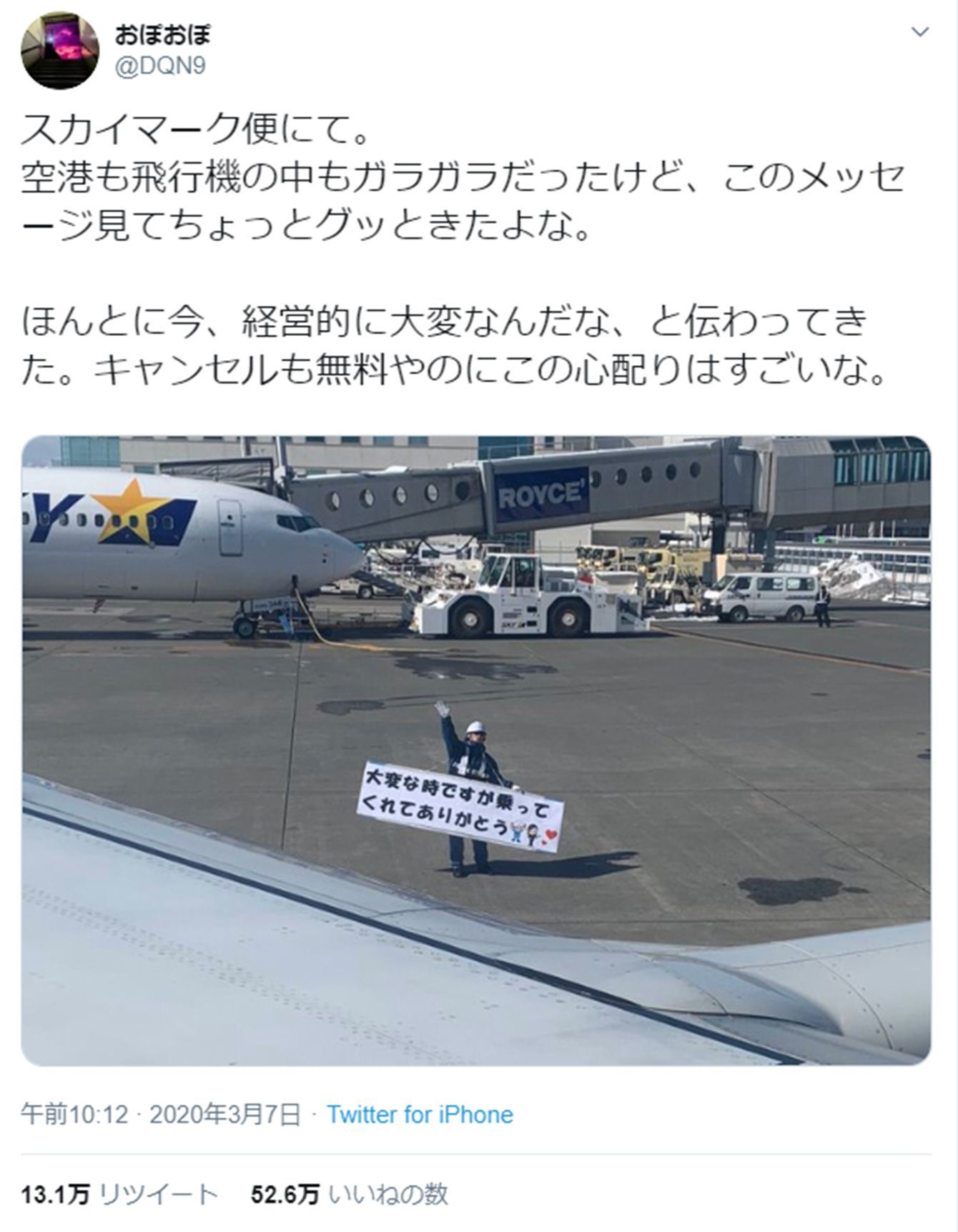 ガラガラの飛行機を「乗ってくれてありがとう」と見送った地上職員の本音