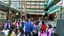 2週間後ろ倒しされた2月25日の開校初日、台北市内の小学校の入口付近で検温開始を待つ児童。
