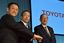 記者会見をするトヨタ自動車の豊田章男社長、内山田竹志副会長、張富士夫会長(左から、肩書きはいずれも当時)=2013年3月6日、東京都江東区