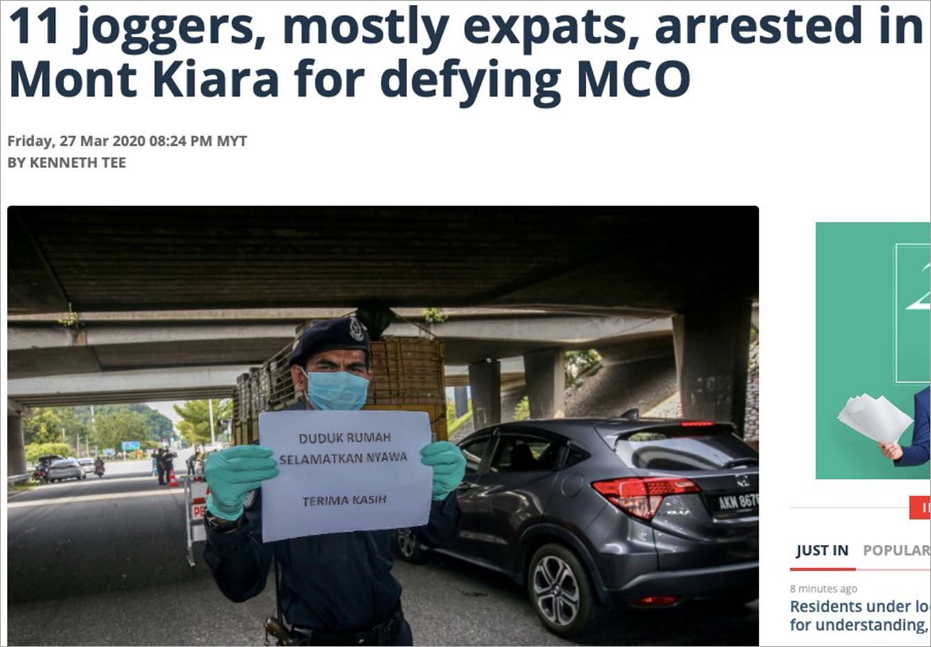 日本人4人を含む11人が活動制限令下でジョギングを続けたとして一時拘束されたニュースは、マレーシア国内で大きく報じられた