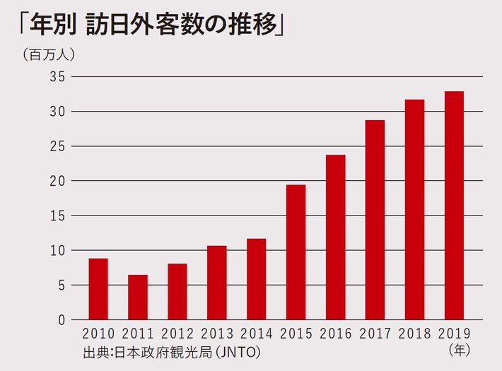 インバウンド需要は2011年に東日本大震災の影響で減ったが、その後に大成長へ。