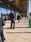 スーパーの行列。店内の人数制限があり、そのため2メートルおきの距離を保って列を作って待っている。(写真提供=堀井光俊教授)