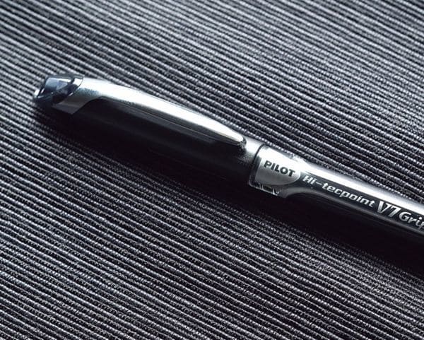 水性インクのボールペンで、とても軽い。田原氏は30年近くパイロットを愛用している。