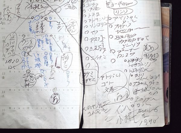 収録前の打ち合わせで書き込んだメモで埋め尽くされた番組台本。「自分がわかればいい」というメモはカタカナが多用されており、他人には判別不可能な部分もある。