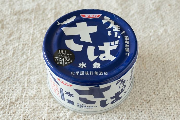 清水食品「SSK うまい!さば水煮」を使用。内容量150gで税込242円(どのメーカーのさば水煮缶でも同じレシピで作れます)