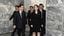 2019年6月12日、板門店で、韓国大統領府の鄭義溶国家安保室長(前列左)と話す北朝鮮の金与正朝鮮労働党第1副部長(同右)[韓国統一省提供]