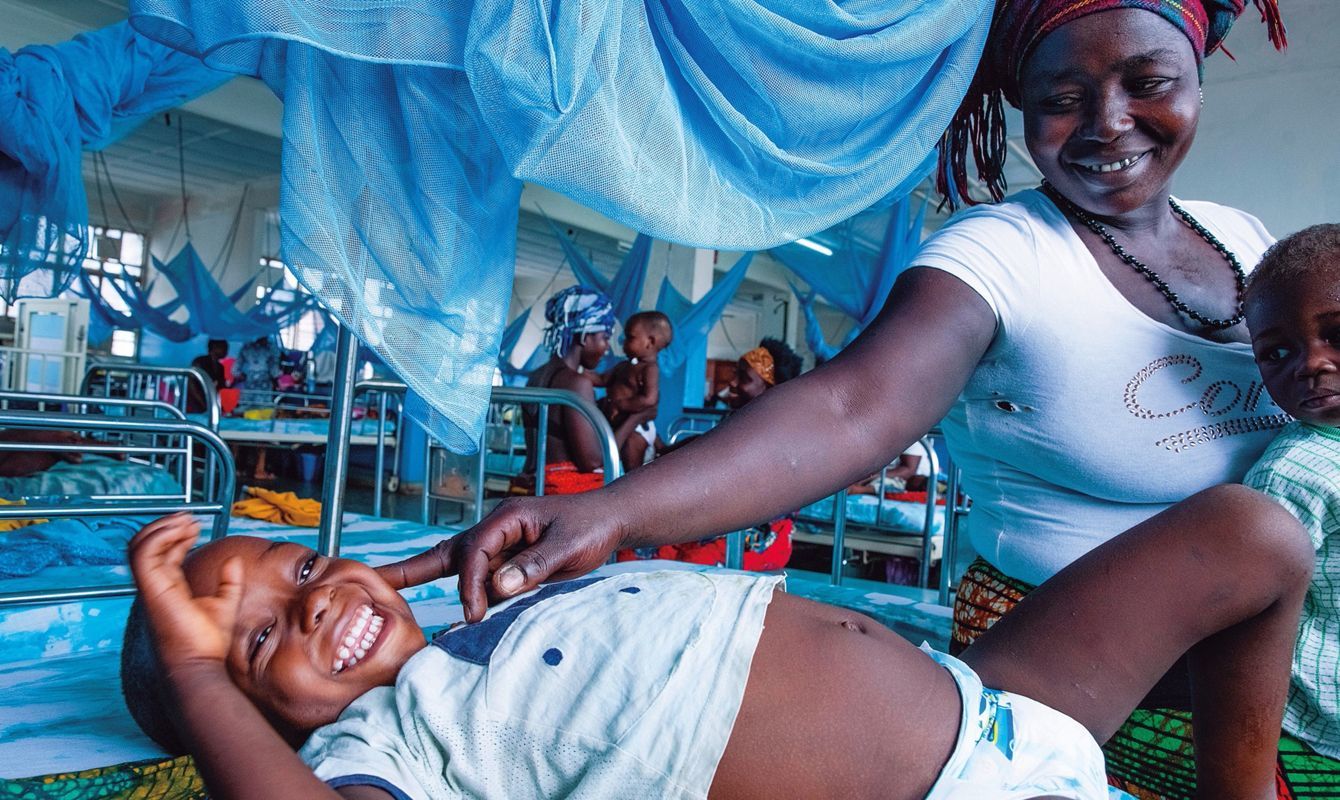マラリアを患いICUに入ったが、回復して普通病棟に移った2歳のアドデュダイ(左)と、母のカディアツ(中)。(アフリカ・シエラレオネ、著者撮影)