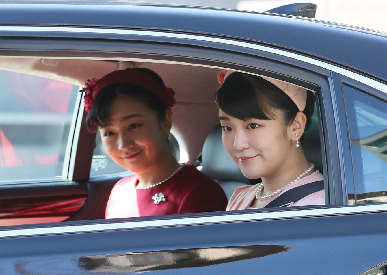 皇居に入られる秋篠宮家の長女眞子さまと次女佳子さま=2020年2月23日、皇居・半蔵門[代表撮影]