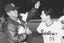 プロ1年目から野村監督の薫陶を受けた真中氏は、“巧打の外野手”、“代打の神様”としてチームを牽引した(1995年4月13日ヤクルト中日戦、逆転勝ちに貢献した真中氏を労う野村氏)。