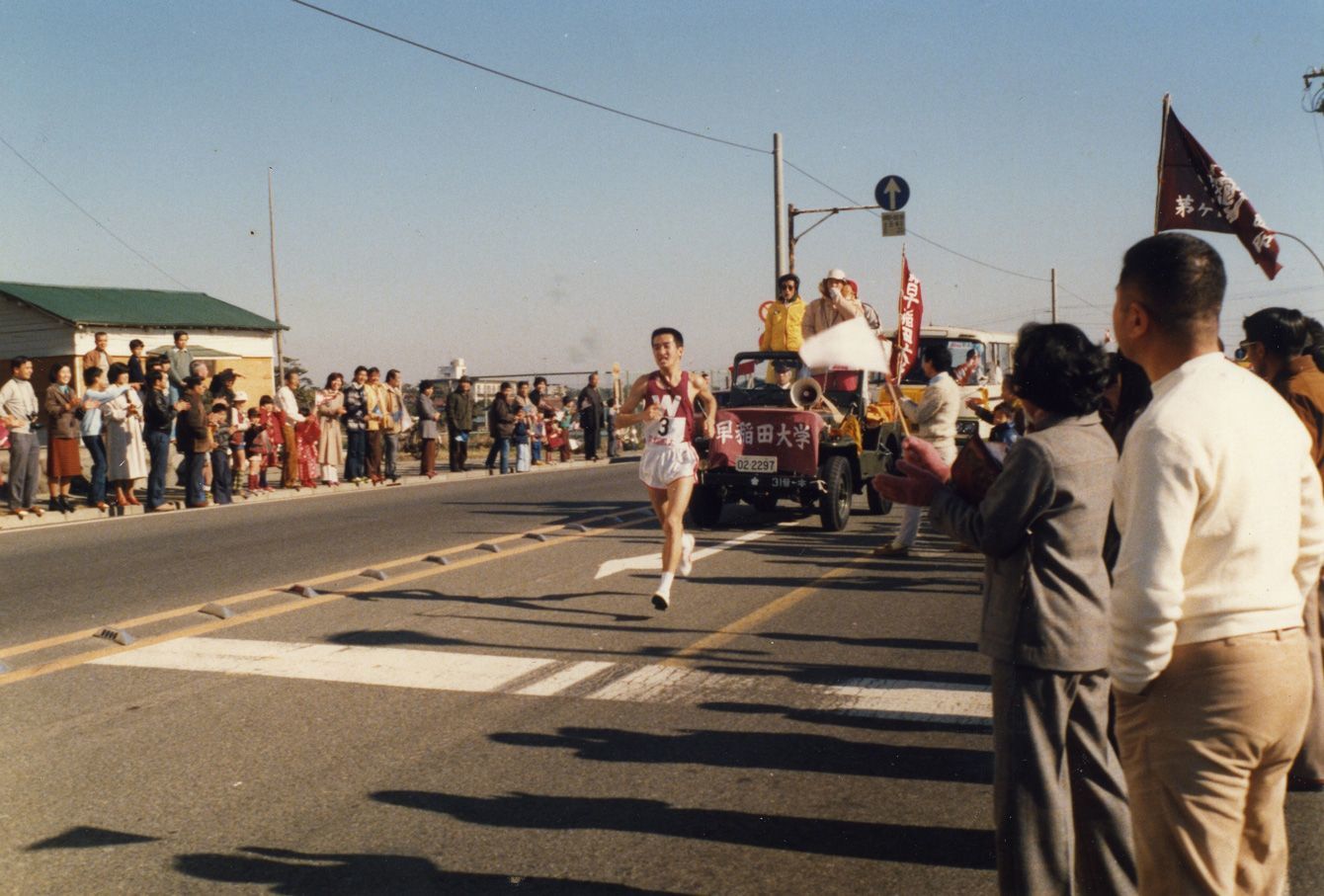 1980年1月3日、大学4年生の筆者が箱根駅伝8区を走る様子