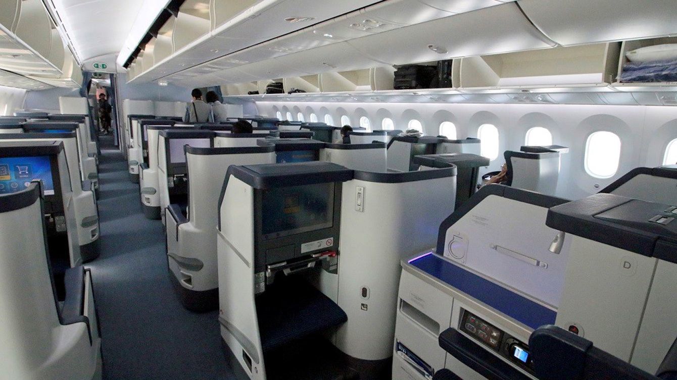 ANA国際線のビジネスクラス座席。パーテションで仕切られ「密」を防ぐ。