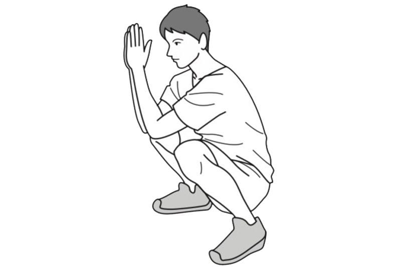 ②しゃがみ込んで、10秒お尻を突かずに止まっていられますか?