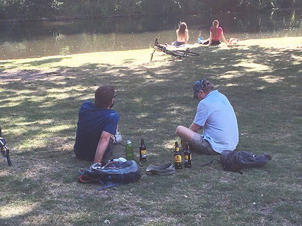 川沿いでビールを楽しむロンドン市民(筆者撮影)