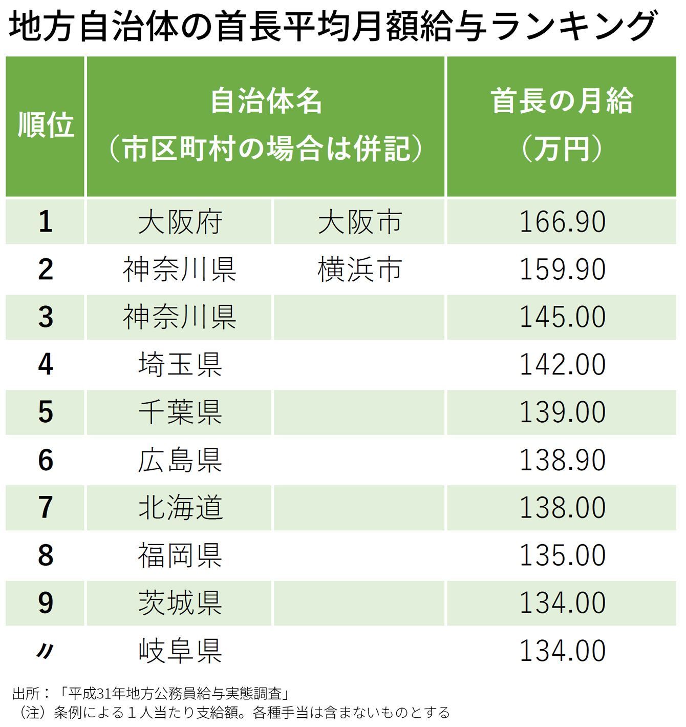 「知事・市長の月給が高い自治体」トップ300・全リスト