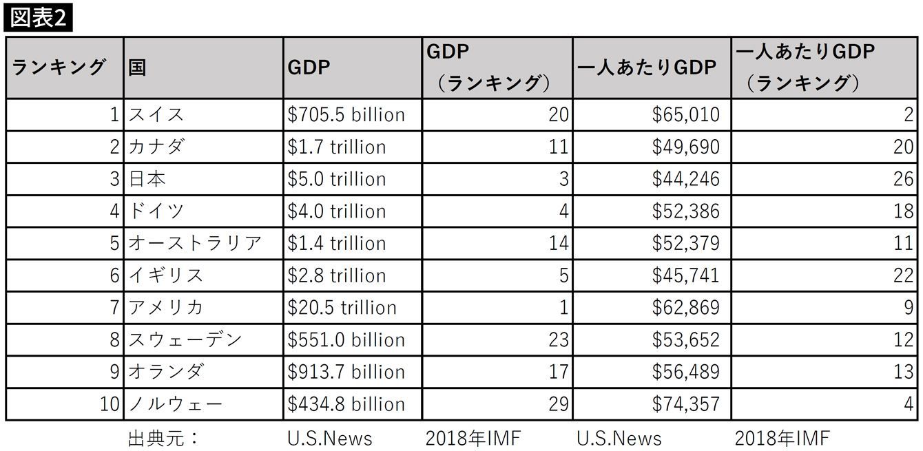 GDP、一人あたりのGDPはU.S.News、ランキングはIMFから