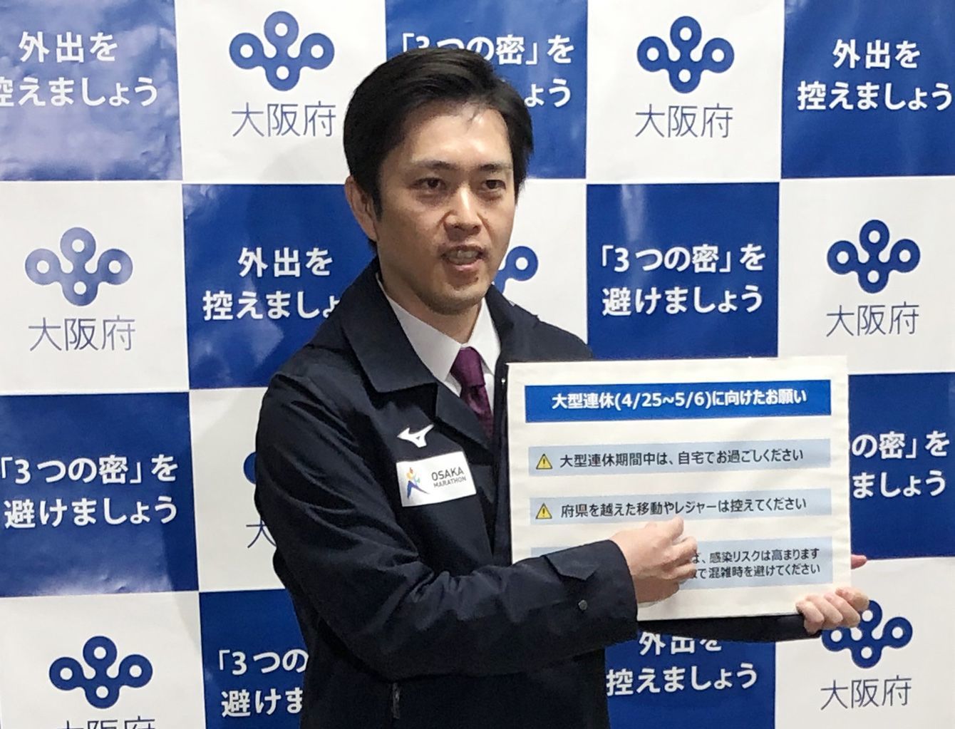 新型コロナウイルスの感染拡大を防止するため、休業要請に応じなかったパチンコ店の店舗名を公表する大阪府の吉村洋文知事=2020年4月24日、大阪府庁