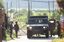 北朝鮮との国境に近い韓国・坡州(パジュ)の軍事監視所で軍用車両に乗り込む韓国陸軍兵士たち、2020年6月19日