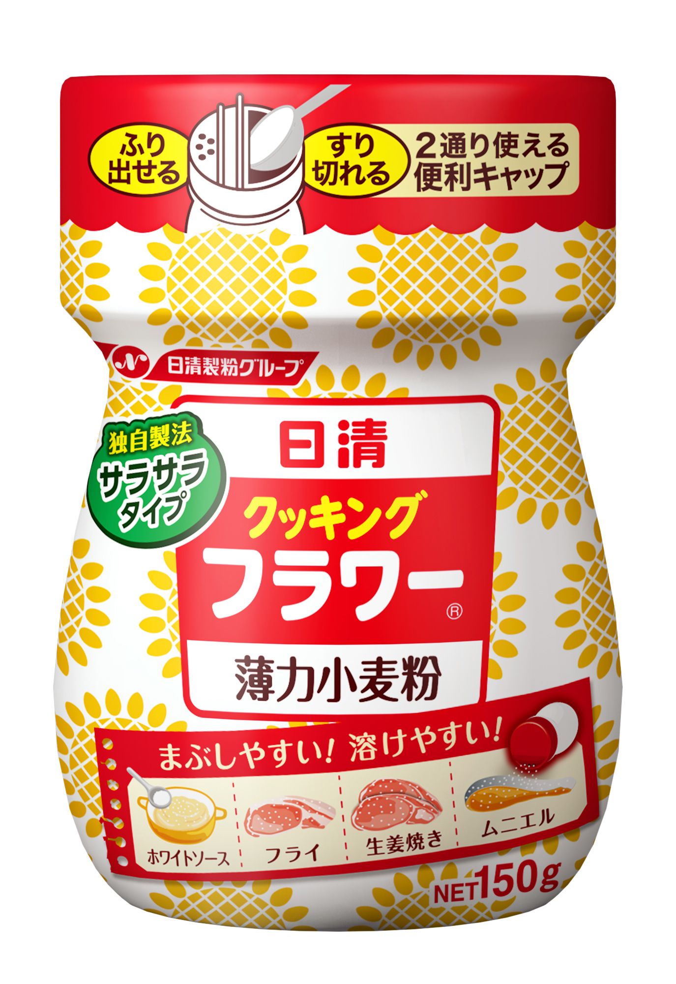 薄力粉を小さなボトルに入れ、ほかの調味料のように振りかけて使用するようにすれば、少量使用が手軽にできるようになる。この着眼が、クッキングフラワーを生み出した。