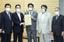 自民党経済成長戦略本部長の岸田文雄政調会長(左から2人目)から提言書を受け取る安倍晋三首相(中央)=2020年6月25日、首相官邸