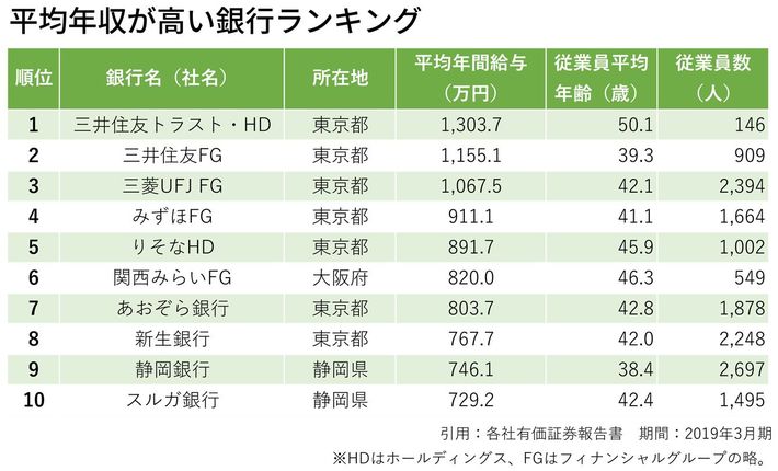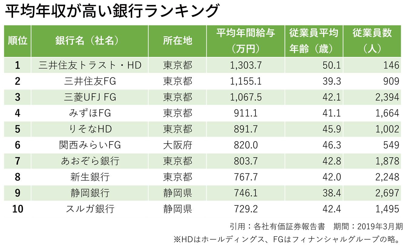 「平均年収が高い銀行ランキング」メガバンク給与トップは三井、最下位みずほ