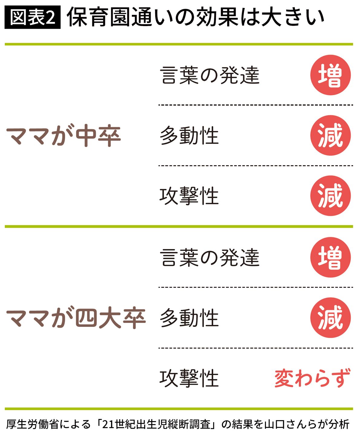 保育園に通う子は家庭保育の子より2歳半時点で偏差値が6~7高い