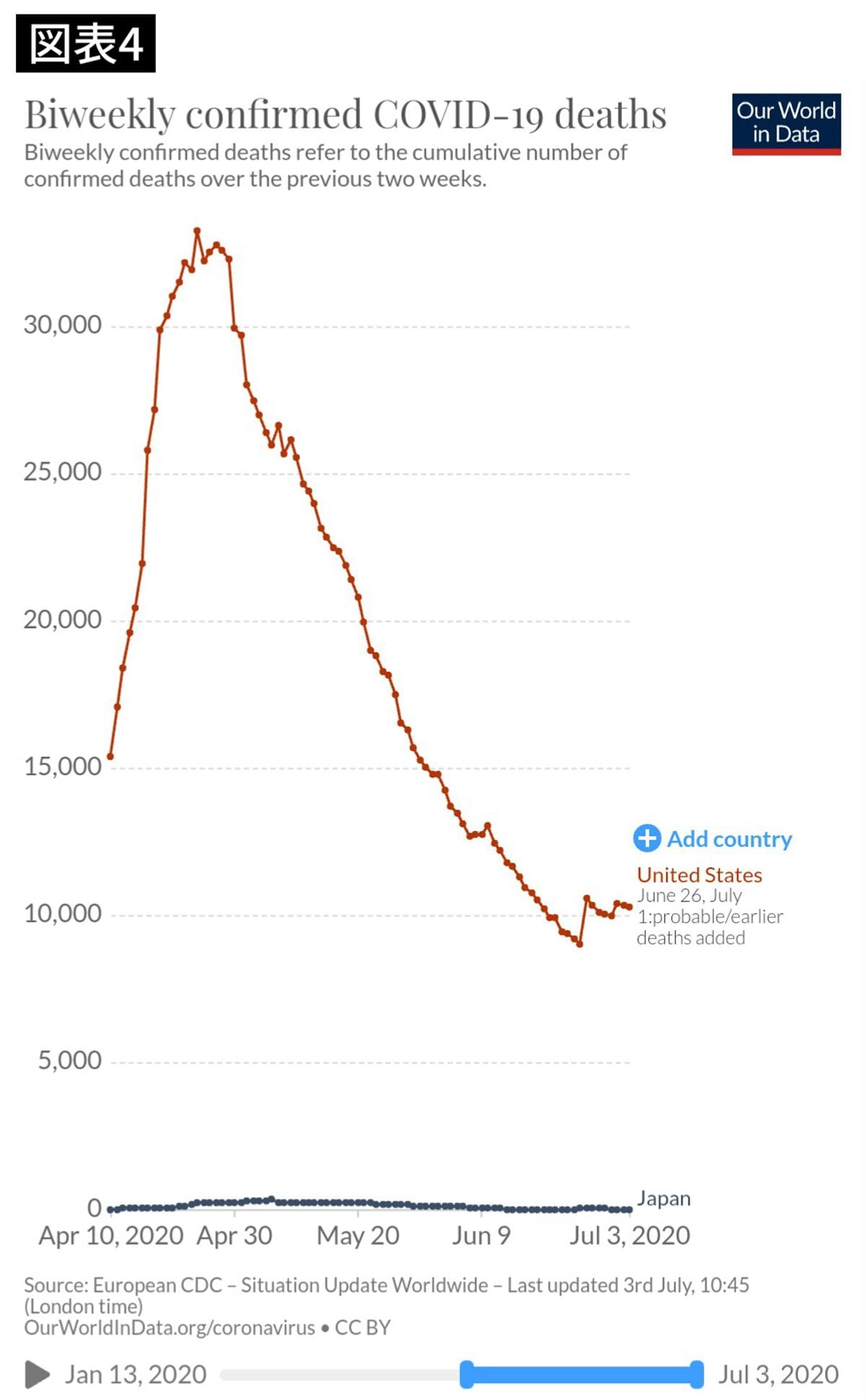 新型コロナウイルスによる死者の推移:隔週(出典: