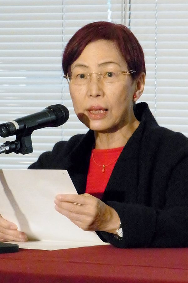 記者会見する東京大学の上野千鶴子名誉教授=2015年11月26日、東京都千代田区の日本記者クラブ(写真=時事通信フォト)