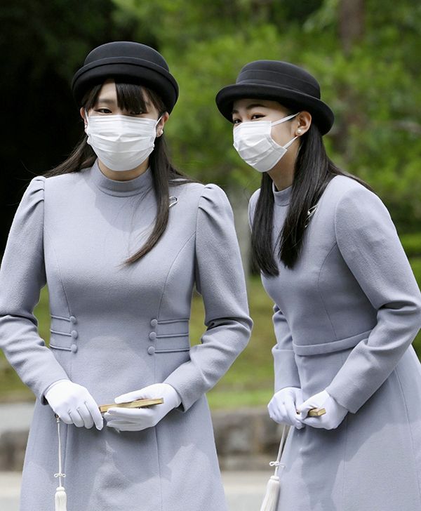 香淳皇后二十年式年祭の儀で、武蔵野東陵の拝礼を終えられた秋篠宮家の長女眞子さまと次女佳子さま=2020年6月16日、東京都八王子市(写真=時事通信フォト)