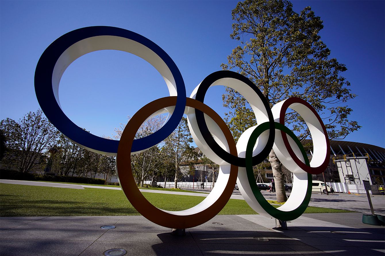 オリンピックリングの記念碑=2020年3月24日