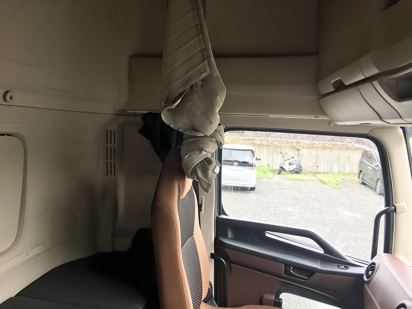 トラック運転席から見た左後方の見え方。自転車があるが、停止したトラックからでも見えない。