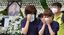 2020年7月11日、韓国・ソウル市庁舎前に設置された追悼祭壇で泣き崩れる韓国人。