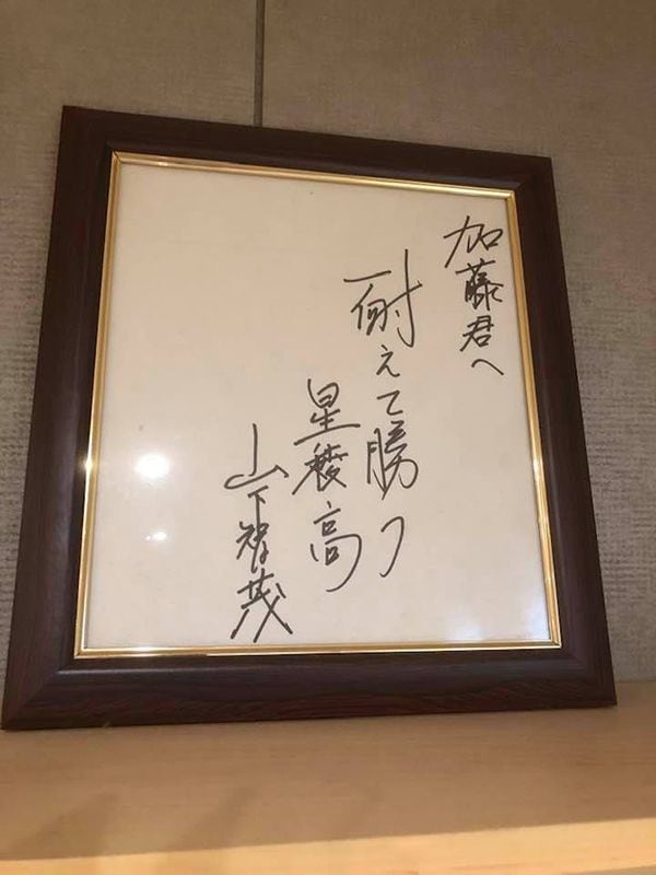 星稜・山下監督から贈られた色紙(画像提供=加藤直樹氏)