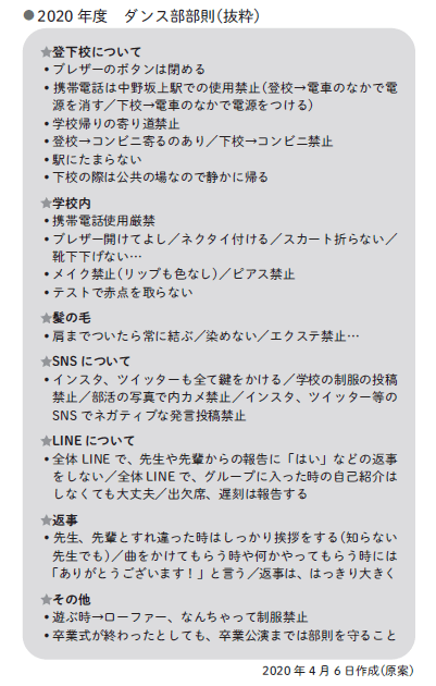 2020年度のダンス部部則(画像提供=宝仙学園中学校・高等学校)