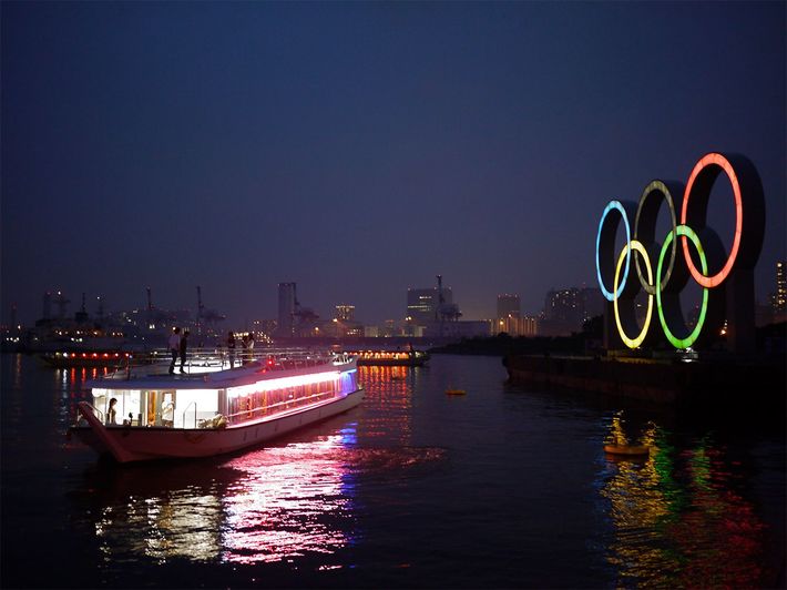 7月24日、幻の東京2020大会開会式の日、お台場に50隻の屋形船が集結。医療従事者への感謝を示す提灯を点灯した。