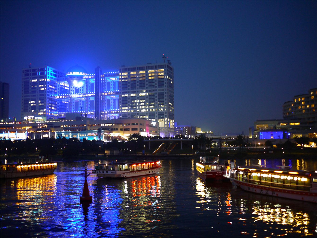 7月24日、幻の東京2020大会開会式の日、お台場に50隻の屋形船が集結。医療従事者への感謝を示す提灯を点灯した。
