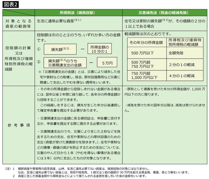 災害により被害を受けられた方へ(所得税及び復興特別所得税関係)