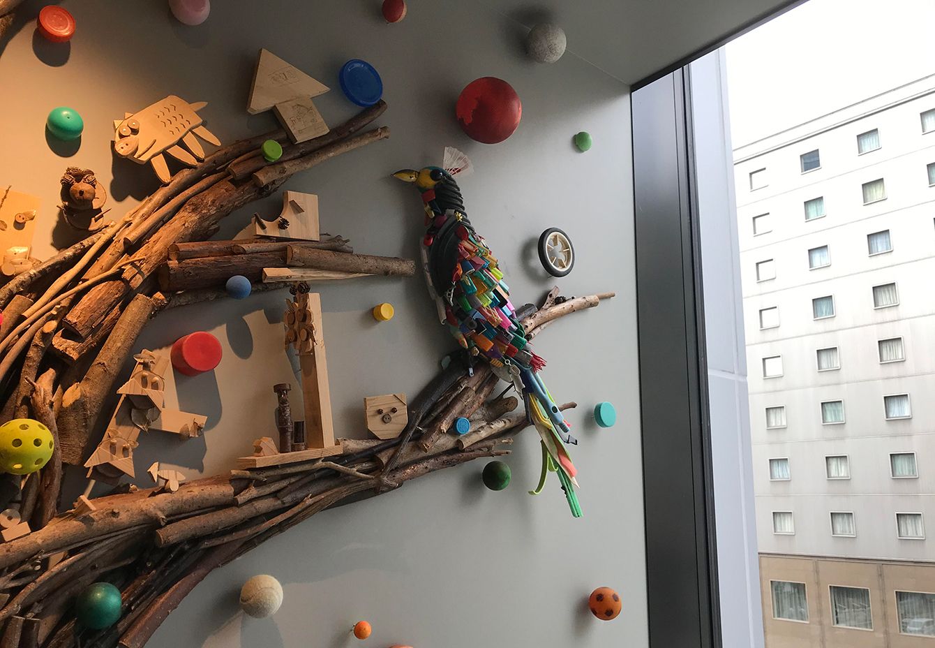 淀川のゴミや漂流物で作った「淀川テクニック」のアート(LINKS UMEDA 2階店)