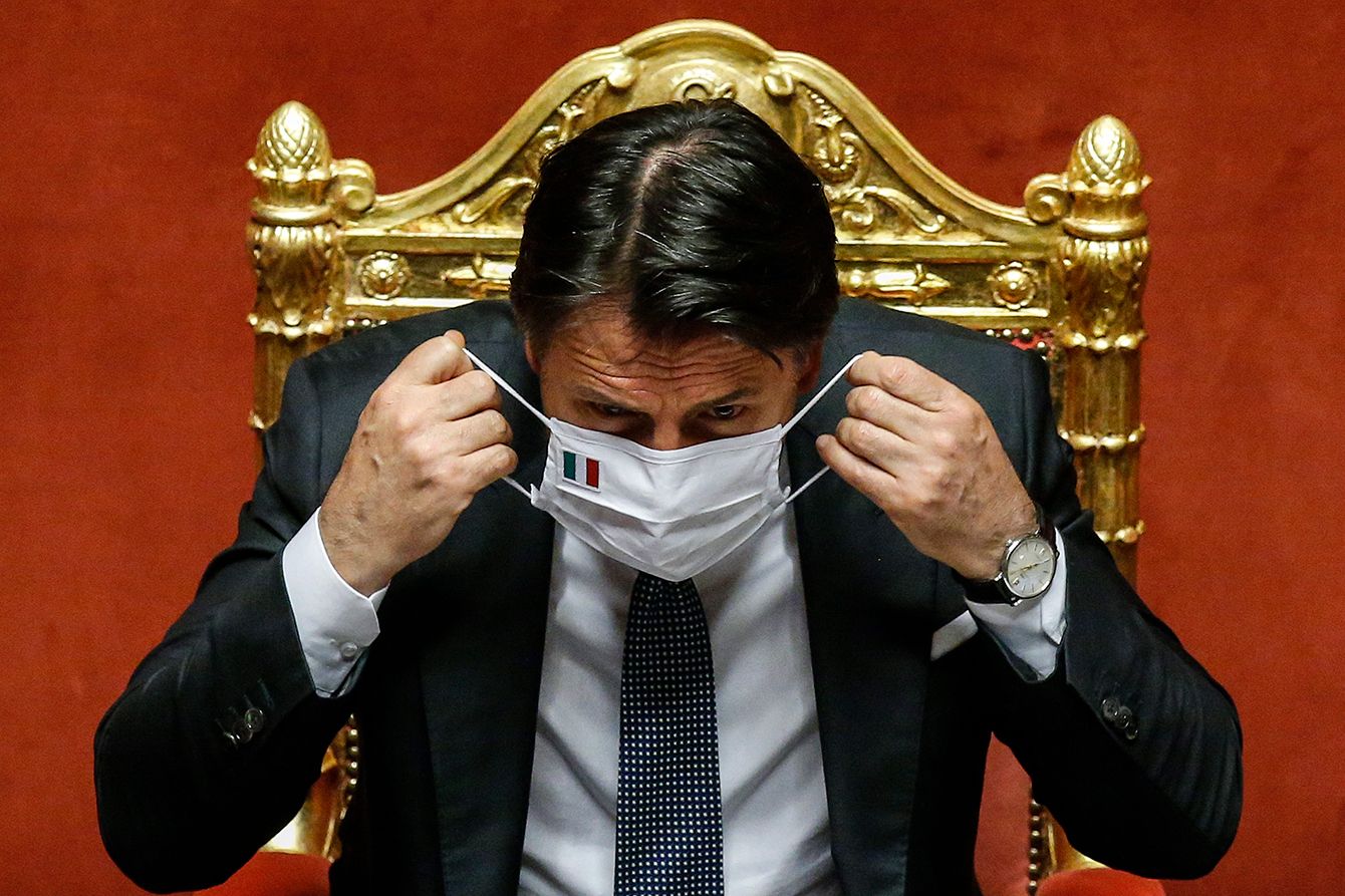 2020年7月28日、マスクを着けるイタリアのジュゼッペ・コンテ首相