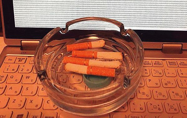 PCに灰皿を載せ、PCの稼働時間を大幅に捏造。