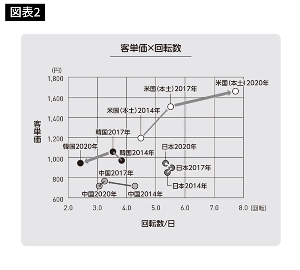 壱番屋の各国別「客単価」と「回転数/日」の推移