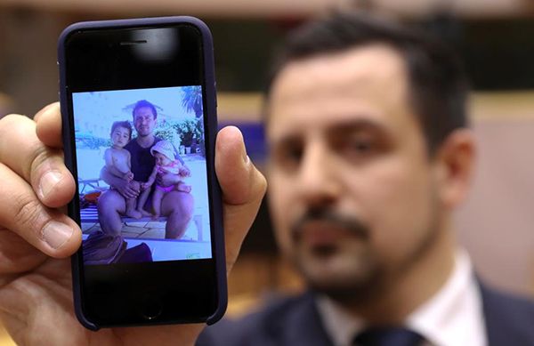 子どもたちと一緒に写った写真を見せるペリーナ氏(写真=ペリーナ氏提供)