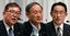 2020年9月9日、東京・自由民主党本部で自由民主党青年局・女性局主催の討論会に出席する石破茂氏(左)、菅義偉氏(中央)、岸田文雄氏(右)。