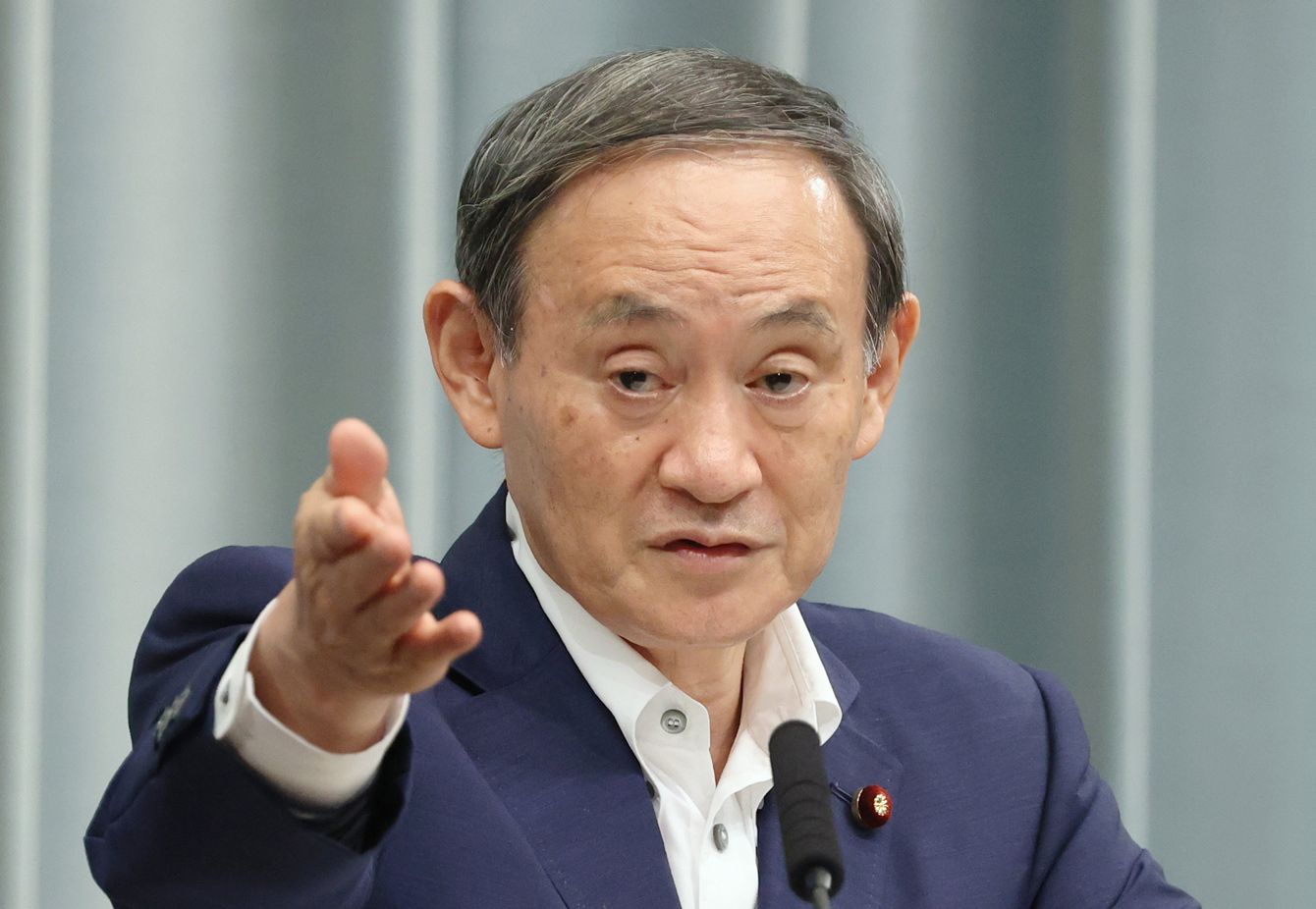 記者会見する菅義偉官房長官=2020年9月3日午前、首相官邸