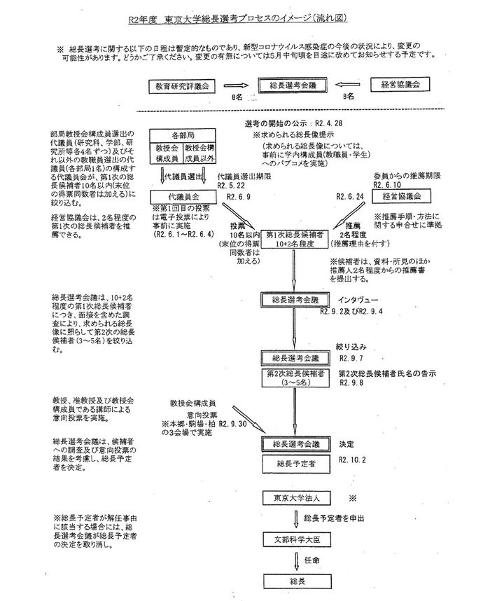 東大総長選考プロセスのイメージ